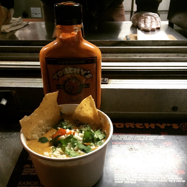 - Torchy’s Tacos – Green Chile Queso: One of those love at first sight stories. Your love will continue to grow deeper with every chip that dips into this combination of perfectly blended spice, cilantro, guacamole, and green chile con queso. Note: Goes well with the Trailer Park extra trashy taco, though all tacos here are 5* in my book. http://torchystacos.com