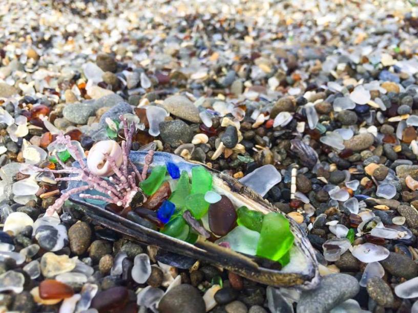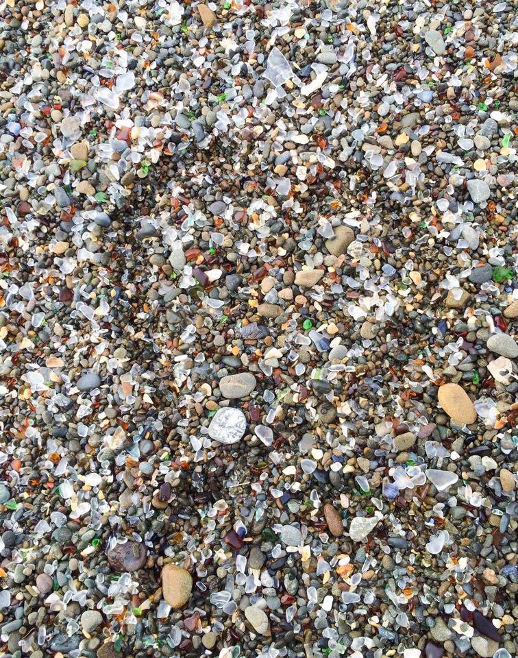 Garbage never looked so good! This Glass Beach is located in Fort Bragg, California in MacKerricher State Park. The colorful sea glass was created from YEARS of dumping garbage into the coastline in Northern California. It was an active dump site up till 1967. According to Wikipedia: “The pounding waves broke down the glass and pottery and tumbled those pieces into the small, smooth, colored pieces that often become jewelry quality and that cover Glass Beach.”