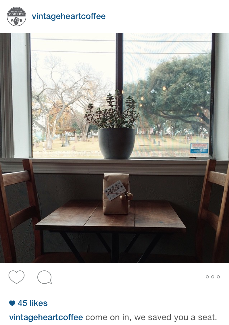 - Vintage Heart Coffee – A quiet, clean, and small shop on the east side. Order a vanilla latte, you will thank me (I love you a latte)! Strong WiFi and although it is small it offers a variety of seating options (e.g., tables, couches, bar stools). There are food trucks right next door that you can go to for lunch. Note: Parking can be hard at times.